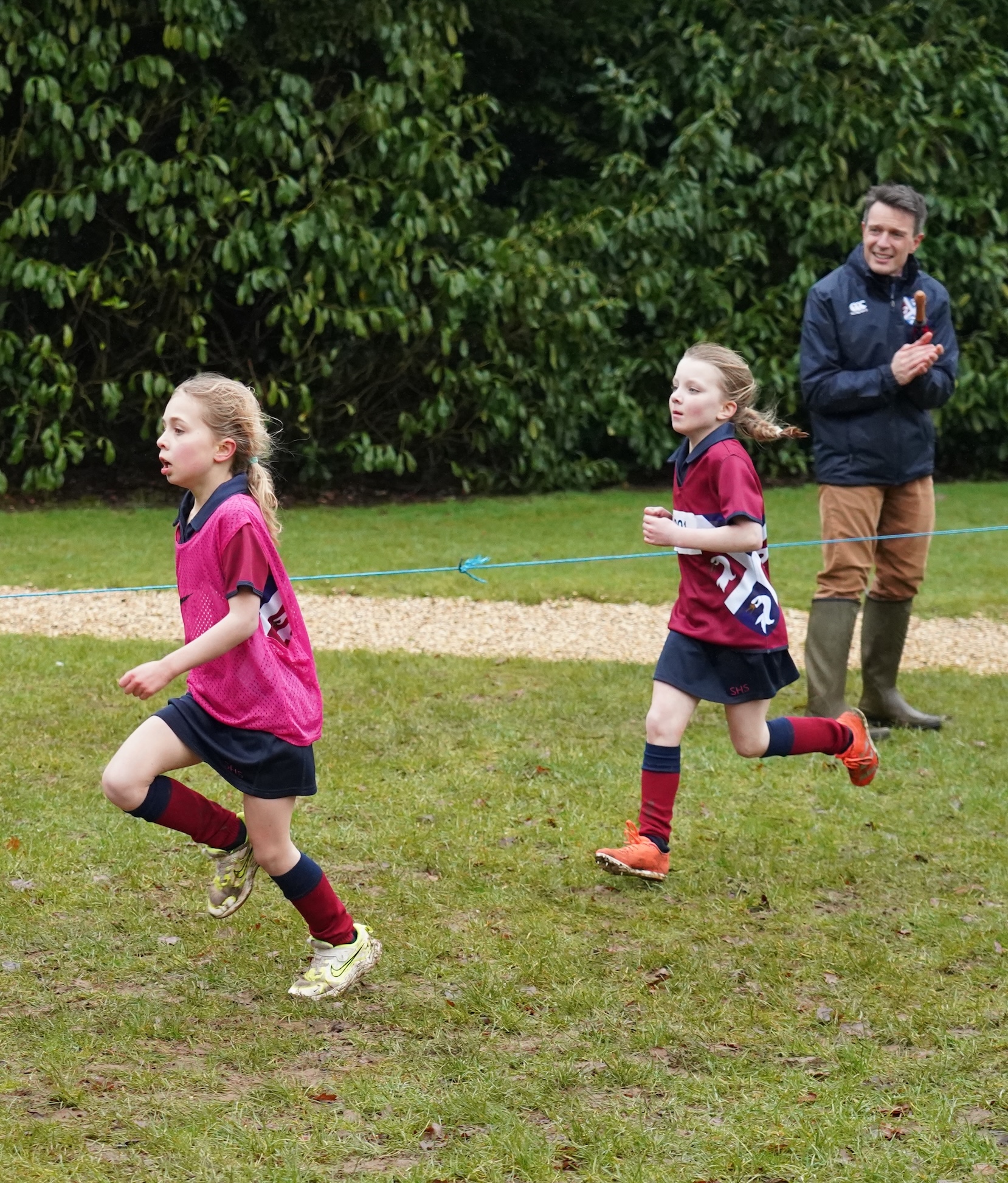 The routes varied slightly depending on the age groups. The younger pupils started at the top of the golf course, down to the bottom sports fields, up through the woods and onto C Lawn for the triumphant finish. The older pupils started with a circuit of the field beyond the ha-ha, running up behind the woods, all the way to the sports fields and through the woods with a final sprint to the front of Swanbourne House where spectators eagerly cheered them on. After the events, parents, staff and children mingled, enjoying refreshments after the awards.